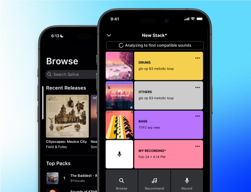 Create instant song starters with compatible layering—record your idea into a Stack, select a recommended loop from your favorite instrument, or browse the entire Splice library for that perfect sample to bring your idea to life.