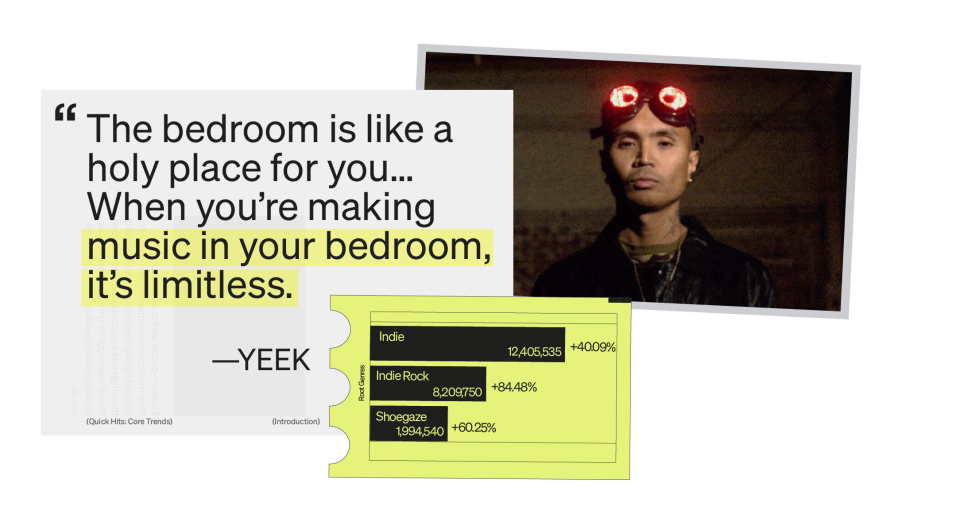 Authenticity over polish is the name of the game for bedroom pop’s continued climb. The subgenre’s triple-digit growth reflects a broader increase in demand for the root genres of indie, indie rock, and shoegaze.